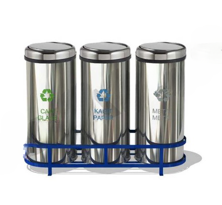 3 lü Sıfır Atık Kutusu 3010 Komple Ünite Genişlik: 93 cm Komple Ünite Derinlik: 31 cm Komple Ünite Yükseklik: 60 cm Kova Ölçüsü: h:60 cm Ø:31 cm Komple Ünite Hacmi: 135 L ( 3 lü Set ) Kova Malzemesi: Elektrostatik Boyalı DKP Saç Kapak Malzemesi: Paslanmaz Çelik Döner Kapak