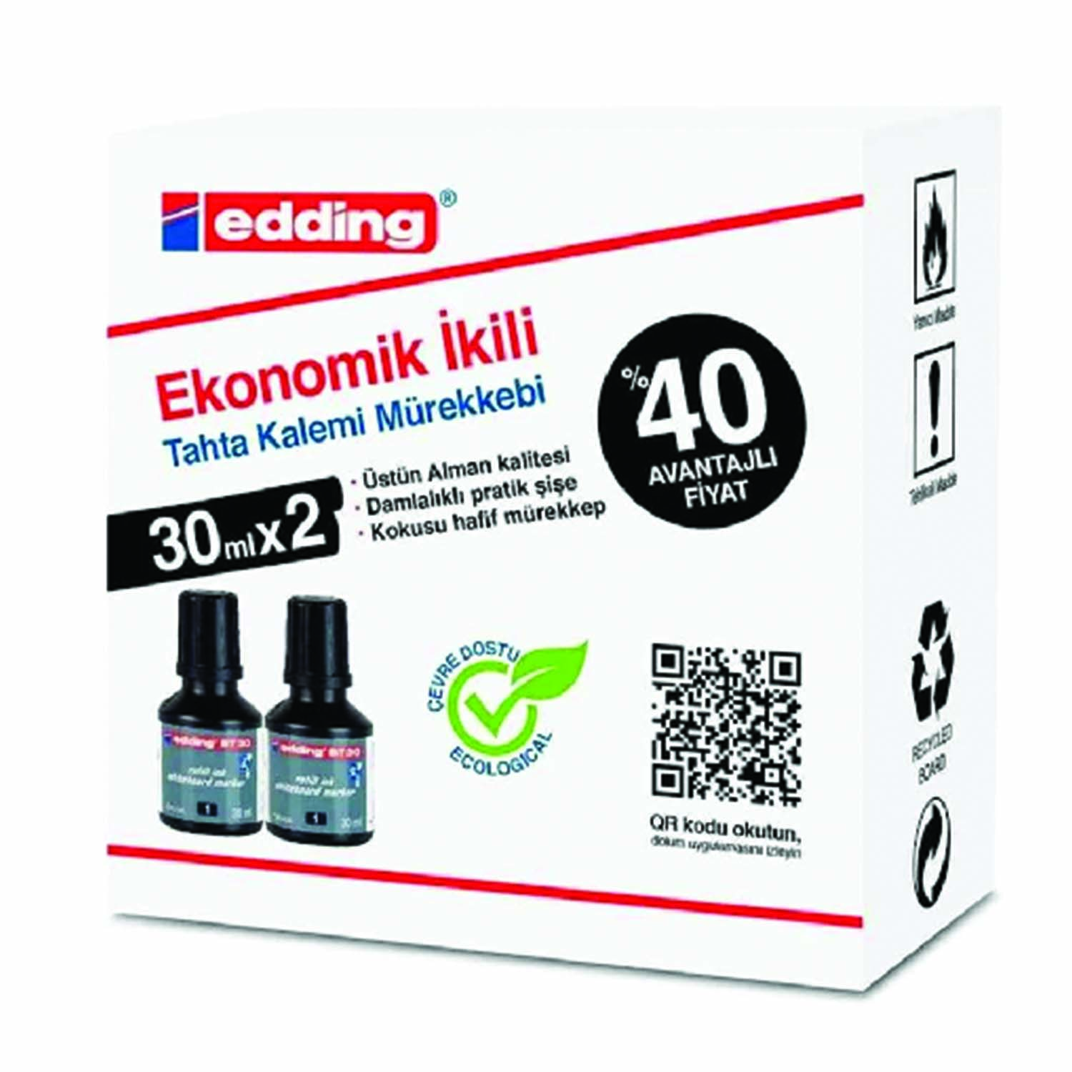 Edding Btk 30 Mürekkep 30ml Siyah Mavi Kırmızı 2Li Paket