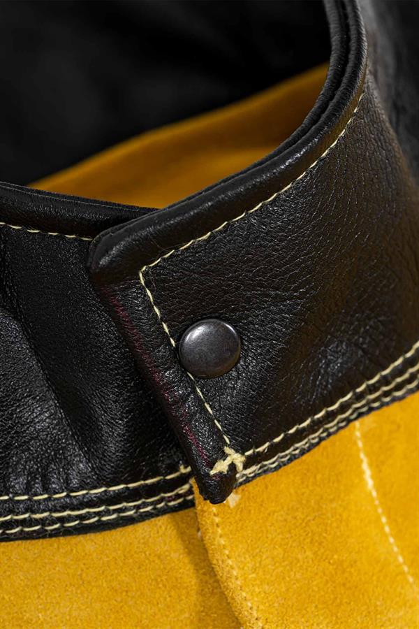 Uzun boyu ile Erimiş metal ve tüm kaynak çalışmalarına uygundur.Koku ve alerji yapmayan deri 1.2 mm – 1.4 mm kalınlığında olup sığır derisi kullanılmıştır.