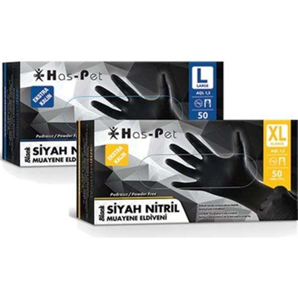 Haspet Nitril Pudrasız Ekstra Kalın Siyah Eldiven 50’li