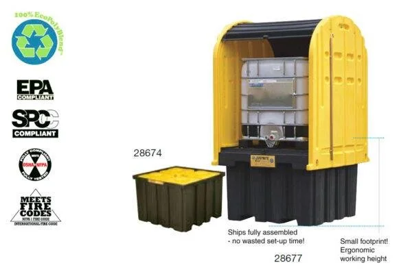 IBC depolama platformları %40 geri dönüştürülür polietilenden üretilmiş , dayanıklı çevreci ve dışarı şartlarına uygun ara depolama platformları ile dış ortamda güvenle muhafaza edilebilir. Bu çok sağlam tasarımlar 1219 mm genişlik x 1219 mm çap ve 1346 mm yüksekliğe kadar ürünleri kapsar. 1408 litrelik akıntı haznesi ile yüksek hacimdeki sızıntılara karşı yönetmeliklerin gerektirdiğinin çok ötesinde koruma sağlar. Dayanıklı ayakları 4082 kg ağırlığa kadar düzgün istiflenmiş yüke uygundur ve akıntı haznesinin temizliği için çıkarılabilir. Yukarı doğru katlanan kilitlenebilir kapıları yan duvara takılan kolay kullanımlı bir sopa ile çift erişimli kullanılabilir. Güvenilir iç mekan depolama için bu platformlardan IBC İç Mekan Paletini tercih ediniz. Her iki tip de boş olduğunda kolay yer değiştirilebilmesi için 2 yönlü forklift taşımasına göre üretilmiştir.
