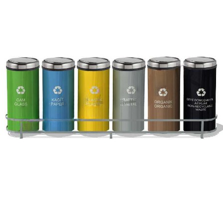 Sıfır Atık Kutusu 6 lı 6010 Komple Ünite Genişlik: 186 cm Komple Ünite Derinlik: 31 cm Komple Ünite Yükseklik: 60 cm Kova Ölçüsü: h:60 cm Ø:31 cm Komple Ünite Hacmi: 270 L ( 6 lı Set ) Kova Malzemesi: Elektrostatik Boyalı Sac Kapak Malzemesi: Paslanmaz Çelik Döner Kapak Alt Baza : Elektrostatik Boyalı Lama Demiri